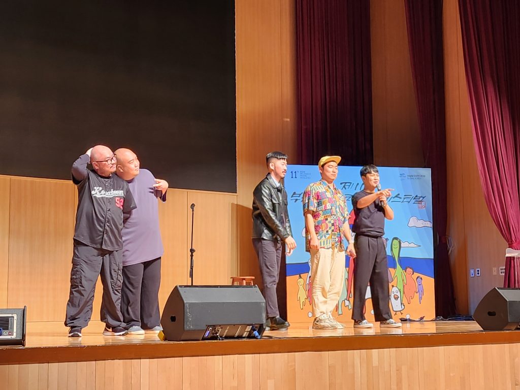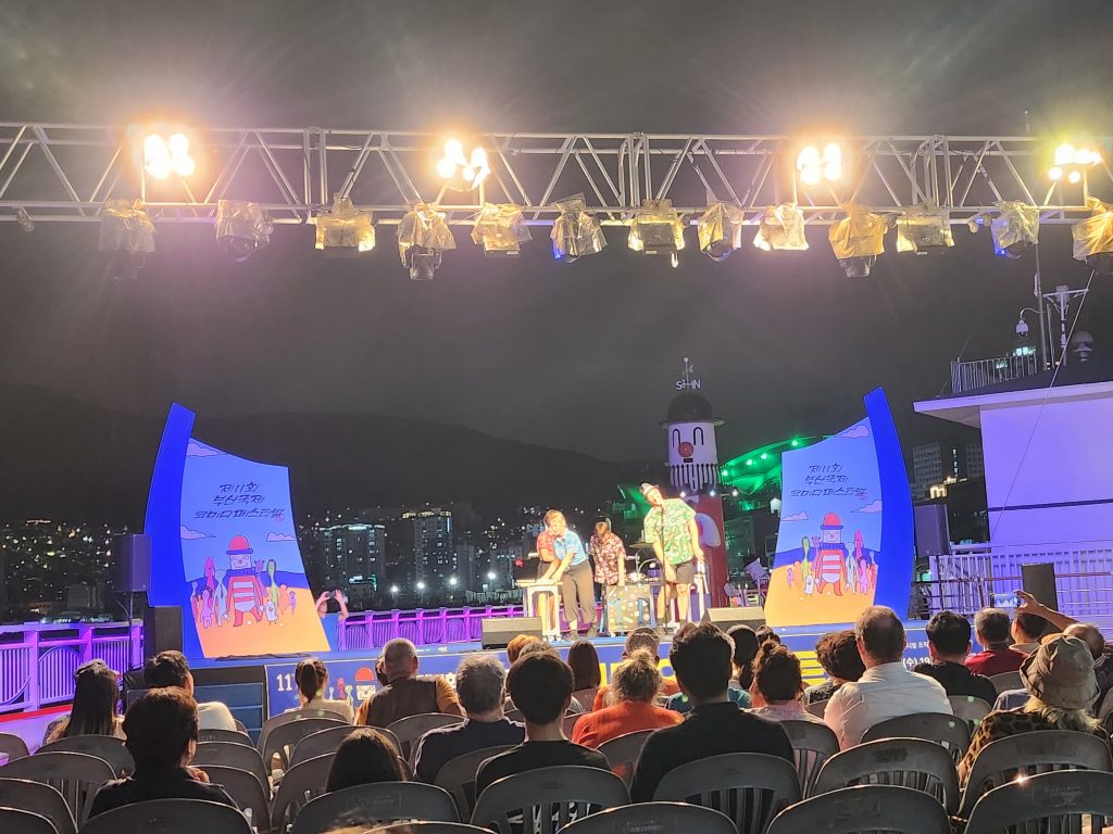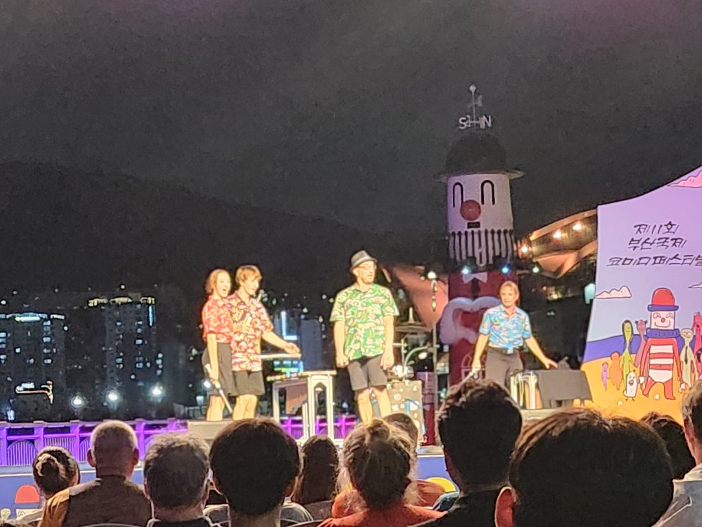 Les jours qui ont suivi le premier week-end du festival étaient peu plus léger. Le lundi était off pour toutes les équipes artistiques. Nous n’avons malheureusement pas pu assister aux représentations du mardi qui se jouaient sous le format « Comedy Open Concert » au Busan Station Square, nous étions bloqués par la pluie dans un café à proximité de Gwangalli Beach. Cependant, le lendemain, le jour où nous avons visité le Gemstone Café, que vous avez pu découvrir sur notre précédent article, nous sommes arrivés à temps pour assister au dernier spectacle de la journée.