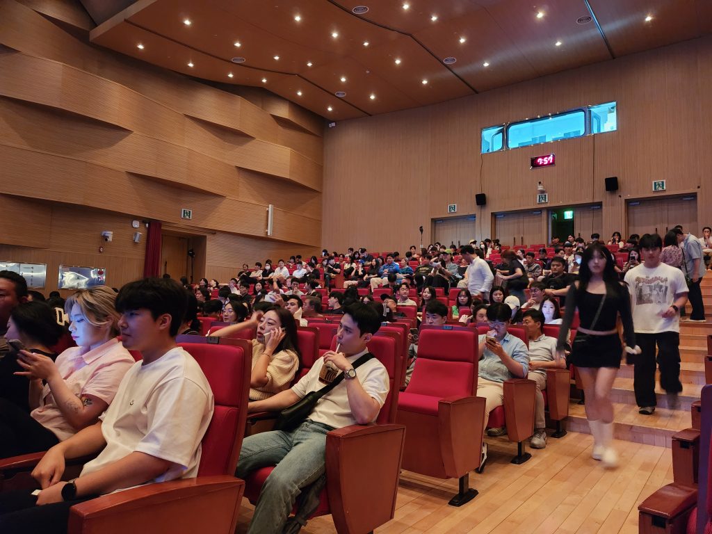En effet, le vendredi soir c’est un tout autre genre de spectacle qui nous attend. Après avoir passé la journée à l’extérieur de Busan pour notamment visiter la forêt Ahopsan, lieu emblématique de nombreux tournages de K-Drama ou K-Movie et le temple Beomeosa nous étions attendu au Busan Bank Headquarter Ocean Hall pour le Seoul Comedy All Stars.