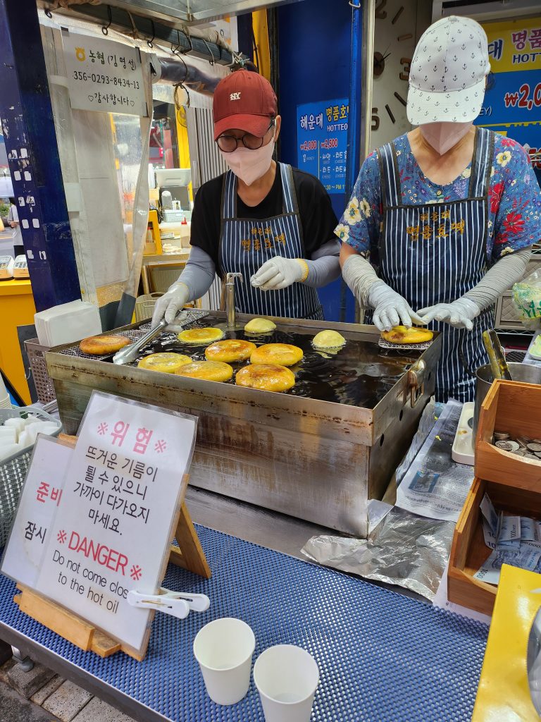 Nous voici enfin sur la dernière journée du festival (notre dernière journée de présence – le festival ne se clôture que le lendemain). Rien ne va se passer comme nous l’avions prévu. Nous avons commencé cette journée par longer la Movie Star Road pour rejoindre par la côte Haundae Beach. Nous avons complètement perdu la notion du temps, nous avons réalisé l’heure qu’il était lorsqu’il s’est mis à pleuvoir, nous n’avions malheureusement pas le temps de nous rendre sur le lieu du spectacle. Nous nous sommes abrités dans un café en attendant que la pluie cesse. Nous avons profité de l’accalmie pour enfin déjeuner (tard certes) et savourer un fabuleux Tteokbokki et goûter enfin les Hotteok si réputés de Busan. L’heure du spectacle suivant approchant, nous n’avons pas fait l’erreur précédente et n’avons pas tardé à rejoindre le Busan Cinema Center pour celui-ci.