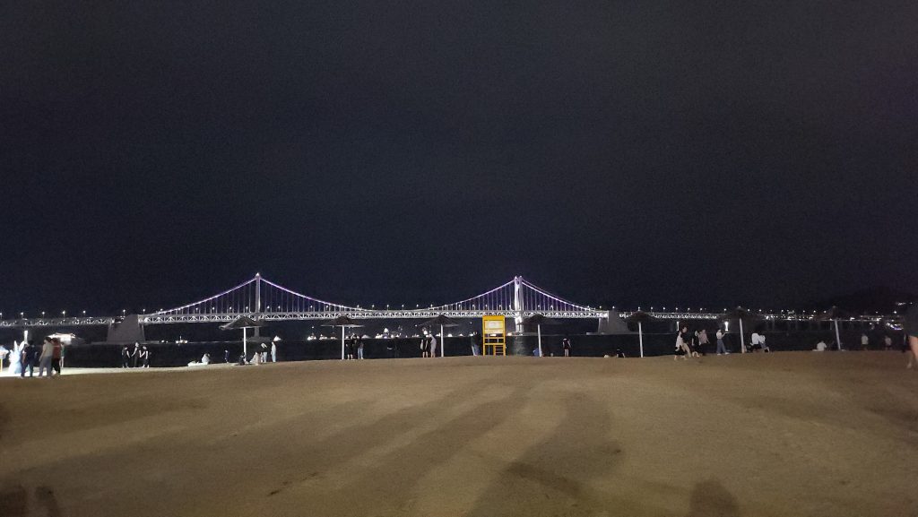 Notre séjour à Busan se termine sur ces réjouissances. Nous voulions assister à un concert prévu à Gwangalli Beach par la ville de Busan pour notre dernière soirée. Malheureusement, il fut annulé en raison de la pluie de cette journée-là. Nous nous contenterons de profiter de la plage et de la vue sur le Diamond Bridge avant de retourner à Séoul.