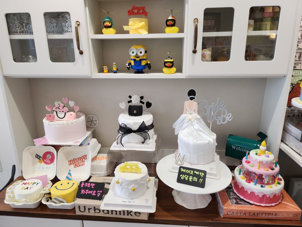 Nos démarches nous ont amenés à l’ouest de Gangnam et à traverser plusieurs quartiers à pied pour rejoindre Yeouido Park, en passant par l’Assemblée nationale. Nous faisons un arrêt à la boutique Nakasan Cake, spécialisée en décoration de gâteaux, et comprenons l’importance de l’image et du détail ici.