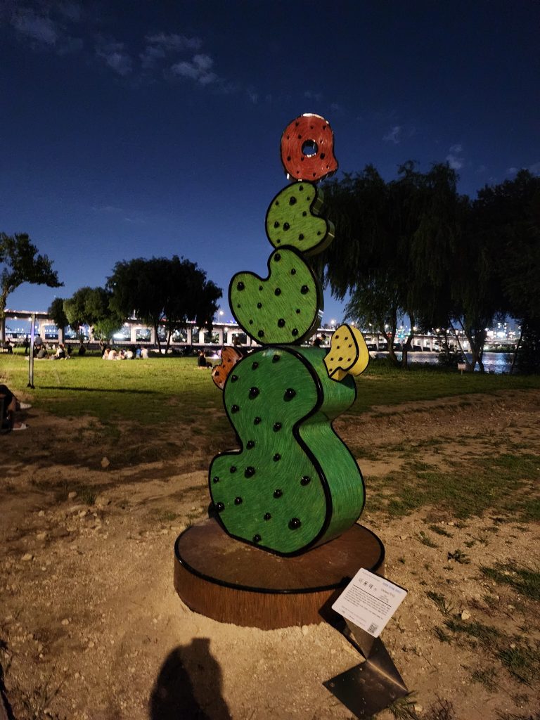 À Séoul, vous trouverez de nombreux parcs dispatchés un peu partout dans la ville et particulièrement le long de la rivière Han. Ces parcs regorgent également de représentations artistiques, sous forme de sculptures abstraites, qui côtoient également des représentations plus populaires. Nous l’avions déjà constaté à Busan, le personnage du Petit Prince est une figure emblématique dans ce pays.